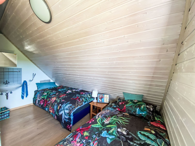 "LoLa", huis 4-kamers 75 m2 op 2 verdiepingen. Gezellig ingericht: woon-/eetkamer met open haard en Sat-TV (Flatscreen TV), DVD. Uitgang naar het terras. 1 kamer met 1 2-pers bed. Open keuken (oven, afwasmachine, 4 keramische glas kookplaten, waterkoker, magnetron, elektrische koffiemachine). Douche/WC, aparte WC. Bovenverdieping: (wenteltrap), 1 kamer met afgeschuinde daken met 1 2-pers bed. Uitgang naar het balkon. 1 kamer met afgeschuinde daken met 2 bedden en wastafel. Uitgang naar het balkon. Elektrische verwarming. Klein balkon, terras gedeeltelijk overdekt. Terrasmeubelen, balkonmeubilair, barbecue. Mooi uitzicht op het meer. Ter beschikking: kinderstoel, kinderbed. Internet (Internet (WiFi), gratis). Rookvrij huis. Rookmelders, brandblusser.