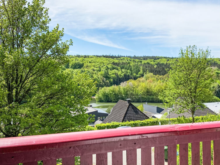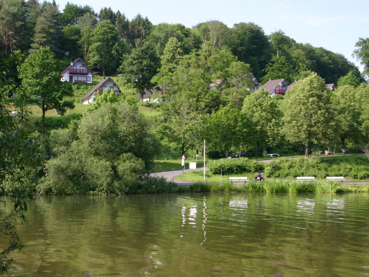 Vakantiedorp "Seepark Kirchheim". Buiten de plaats, 4 km van het centrum van Kirchheim, rustige, zonnige ligging tegen een helling, direct aan het meer, te midden van groen. Openbare parkeerplaatsen in de straat. Winkel 4 km, supermarkt 4 km, winkelcentrum 4 km, bakkerij 4 km, café 400 m, bushalte 400 m, treinstation "Bad Hersfeld" 15 km, openluchtzwembad 4 km, thermaalbad 15 km. Golfterrein (18 holes) 4 km, tennis 10 km, midgetgolf 15 km, wandelroutes 300 m vanaf het huis. Bekende meren kunnen gemakkelijk worden bereikt: Stausee 500 m. Auto noodzakelijk. De eigenaar accepteert geen jeugdgroepen. Het Seepark is opgedeeld in vier "dorpen" met in totaal 139 vakantiewoningen, die rond het meer zijn gegroepeerd (10 hectare water, zwemmen, waterskiën, zonneweide). De route rond het meer is ideaal om te wandelen en te joggen.