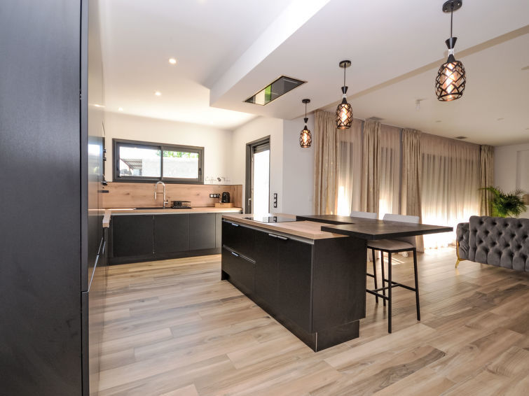 Villa 4-kamers 132 m2 op 2 verdiepingen. Mooi en modern ingericht: woon-/eetkamer 70 m2 met eettafel en TV (Flatscreen TV). Uitgang naar de tuin. Open keuken (oven, 3 inductiekookplaten, broodrooster, waterkoker, magnetron, diepvriezer, elektrische koffiemachine). Aparte WC. Bovenverdieping: 1 kamer met 1 2-pers bed (180 cm, lengte 200 cm), douche. Uitgang naar het balkon. 1 kamer met 2 bedden (90 cm, lengte 190 cm). 1 kamer met 1 2-pers bed (180 cm, lengte 200 cm). Badkamer, aparte WC, dubbele wastafels. Air-conditioning. Terras. Terrasmeubelen, barbecue (verrijdbaar), ligstoelen (2). Ter beschikking: wasmachine, strijkijzer, kinderbed tot 2 jaar. Internet (WiFi, gratis). Geschikt voor families. Rookvrij huis. Rookmelders. Aanbod door een particulier volgens art. 155, IV van CGI.