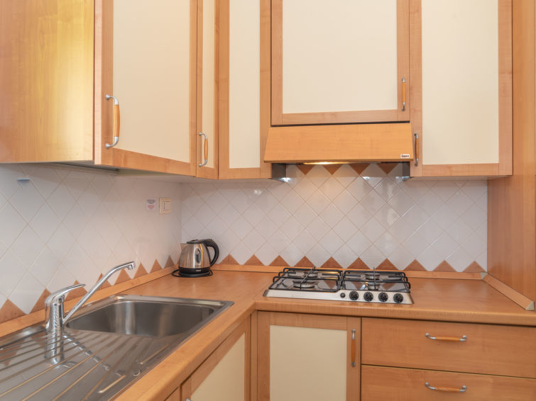 "Acacia 1 - Vista Village", huis in een rij 3-kamers 84 m2 op de 1e verdieping. Ruim en licht, comfortabel en gezellig ingericht: woon-/eetkamer met veranda, panoramavenster met 1 2-pers divanbed, Sat-TV en Flatscreen TV. 1 2-pers. kamer met douche/bidet/WC. 1 kamer met 2 bedden. Uitgang naar het terras. Keuken (4-pits kookplaat, afwasmachine, magnetron, diepvriezer). Douche/bidet/WC. Air-conditioning, heteluchtverwarming. Groot terras. Terrasmeubelen. Mooi uitzicht op zee en de tuin. Ter beschikking: kluis, haardroger. Parkeerplaats nr. A1 (overdekt, omheind), breedte 230 cm. IT090084B4000E2088