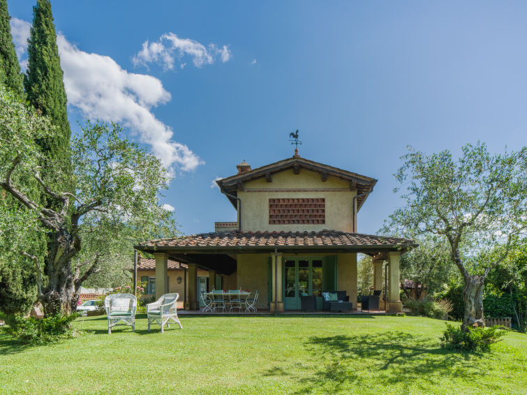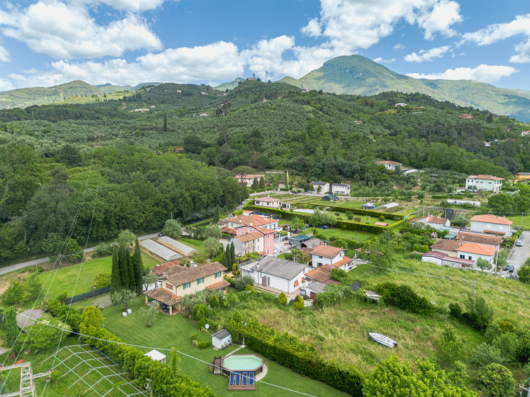 Capezzano 4 km van Camaiore: Moderne, mooi eengezinswoning "Il Casale", omgeven door weiden. 500 m van het centrum van Capezzano, 5 km van het centrum van Lido di Camaiore, 20 km van het centrum van Lucca, centrale, zonnige ligging, 5 km van zee, 5 km van het strand, aan een doodlopende weg, aan een weg, te midden van groen. Voor alleengebruik: tuin 1.500 m2 (omheind) met gazon, openluchtzwembad (verhoogd) (6 x 3 m, 100 cm diepte, seizoensgebonden beschikbaarheid: 01.Mei. - 04.Okt.). Buitendouche, patio, tuinmeubelen, barbecue, parkeerplaats (voor 5 auto's) op het terrein. Levensmiddelenwinkel 500 m, supermarkt 1 km, restaurant 1 km, bar 1 km, bushalte 500 m, treinstation "Viareggio" 6 km, zandstrand 5 km. Attracties in de buurt: Camaiore 5 km, Forte dei Marmi 11 km, Pietrasanta 5 km, Marina di Pietrasanta 9 km, Pisa 46 km, Carrara cave Fantiscritti 44 km. Bekende meren kunnen gemakkelijk worden bereikt: Torre del Lago 22 km, Lago di Massaciuccoli 16 km. Wandelgebied Antro del Corchia Levigliani 32 km. Auto noodzakelijk. De eigenaar accepteert geen jeugdgroepen.