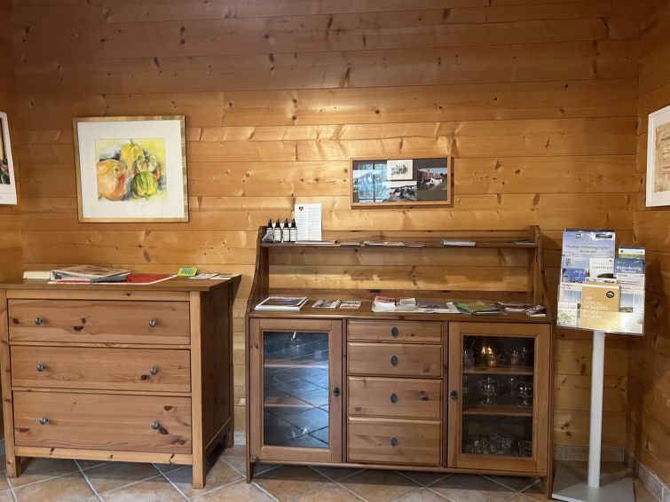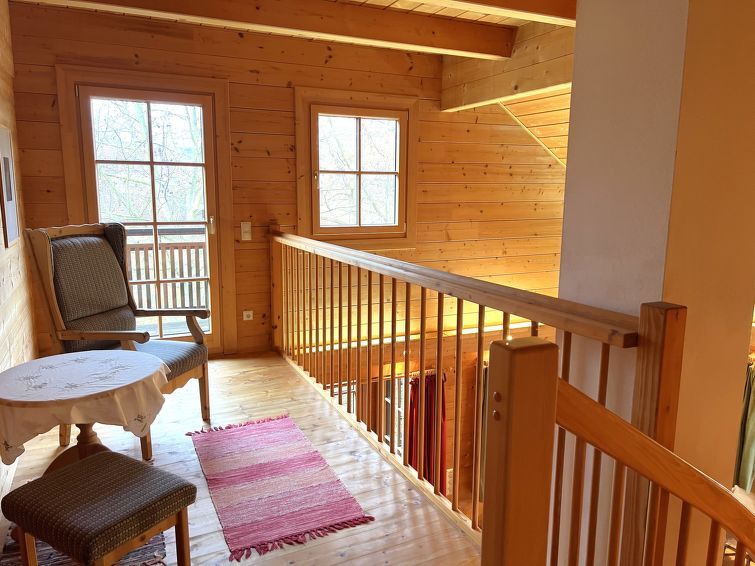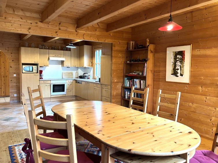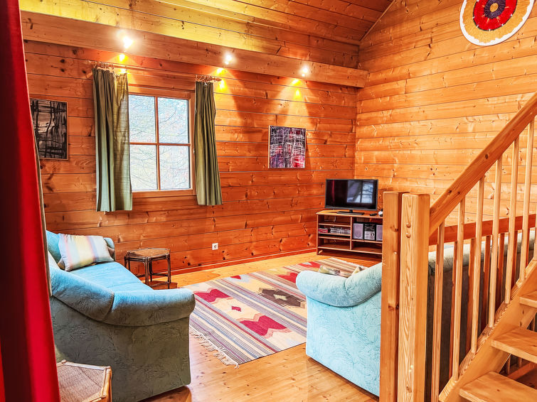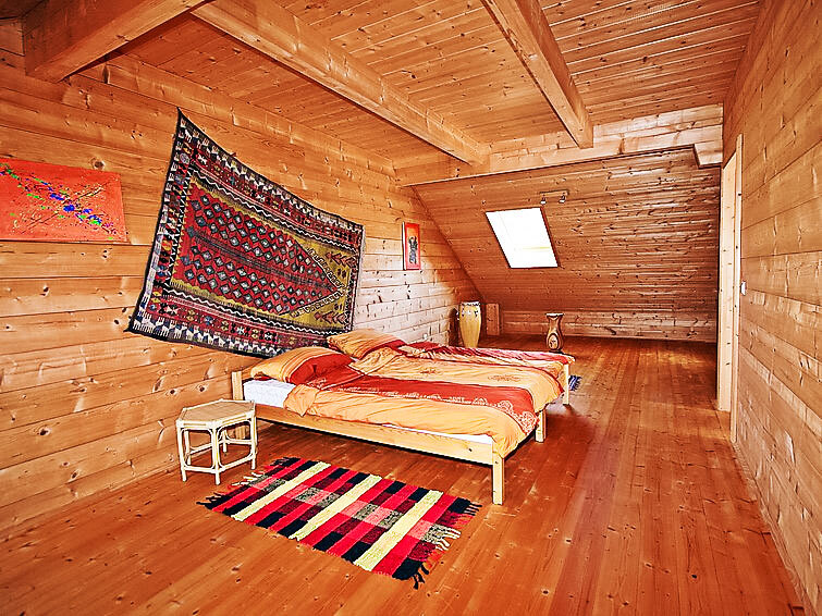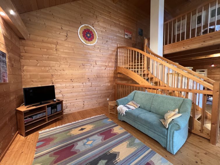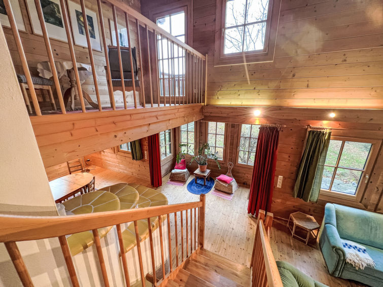 4-kamers cottage 130 m2 op 3 verdiepingen. Licht, comfortabel en met veel hout ingericht: groot hal. Open eetkamer. Uitgang naar het terras. Open woonkamer met 1 2-pers divanbed, Sat-TV, Flatscreen TV en tegelkachel. Uitgang naar de tuin. 1 2-pers. kamer. Open galerij. Uitgang naar het balkon. Open keuken (oven, afwasmachine, 4 keramische glas kookplaten, magnetron, elektrische koffiemachine). Bad/douche, aparte WC, dubbele wastafels met hoekbad. Vloerverwarming. Bovenverdieping: 1 groot 2-pers. kamer met dakraam. Houten vloeren. Balkon 10 m2, groot terras 15 m2. Terrasmeubelen, barbecue. Mooi uitzicht op de tuin, het landschap en de plaats. Ter beschikking: wasmachine, haardroger. Internet (WiFi, gratis). Niet rokers woning. Rookmelders.