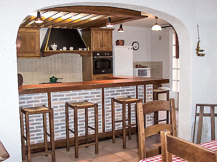Huis 5-kamers 270 m2 op 2 verdiepingen. Ruim, doelmatig ingericht: hal. Groot woon-/eetkamer met open haard en Sat-TV (Flatscreen TV), DVD. Uitgang naar het terras. 1 kamer met 1 2-pers bed (140 cm, lengte 190 cm), TV. Uitgang naar de tuin. 1 kamer met 2 bedden (90 cm, lengte 190 cm). Uitgang naar het terras. Open keuken (oven, afwasmachine, 2 inductiekookplaten, 2 kookpitten (vlammen), broodrooster, magnetron, diepvriezer, elektrische koffiemachine, pads voor de koffiemachine (Senseo) extra) met bar. Bad/douche, aparte WC, dubbele wastafels. Bovenverdieping: 1 kamer met 2 bedden (90 cm, lengte 180 cm). Uitgang naar het terras. 1 kamer met 1 2-pers bed (1 x 160 cm, lengte 200 cm), bad/douche/WC, TV en DVD. Galerij met afgeschuinde daken, hoogte van het plafond 170 cm met 1 bed (80 cm, lengte 190 cm). 2 terrassen overdekt. Terrasmeubelen, barbecue, ligstoelen (6). Mooi uitzicht. Ter beschikking: wasmachine, strijkijzer, kinderstoel, kinderbed, haardhout (gratis). Internet (Internet (WiFi), gratis). Rookvrij huis. Maximaal 1 huisdier/hond toegestaan. Rookmelders. In plaats van een afgesloten slaapkamer bevinden sommige slaapgedeeltes zich in een open ruimte (galerij, nis, etc.).