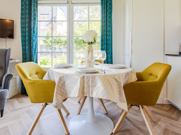 Appartement 3-kamers 52 m2, op de begane grond. Zeer modern ingericht: hal. Woon-/eetkamer met 1 2-pers divanbed (1 x 140 cm, lengte 190 cm), TV (Flatscreen TV). Uitgang naar de tuin, naar het terras. 1 kamer met 1 2-pers bed (1 x 140 cm, lengte 190 cm). 1 kamer met 1 opklapbed (140 cm, lengte 190 cm). Kookhoek (oven, afwasmachine, 3 inductiekookplaten, broodrooster, waterkoker, magnetron, diepvriezer, elektrische koffiemachine). Douche, aparte WC. Gas-verwarming. Terras overdekt, gazon. Terrasmeubelen. Ter beschikking: wasmachine, droger. Internet (Internet (WiFi), gratis). Parkeerplaats (overdekt). Niet rokers woning. Rookmelders. Aanbod door een particulier volgens art. 155, IV van CGI.