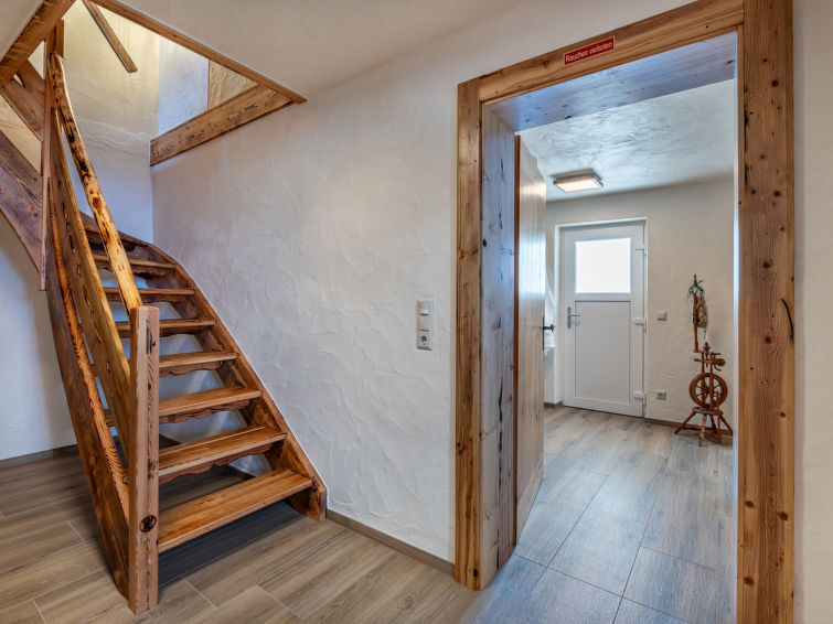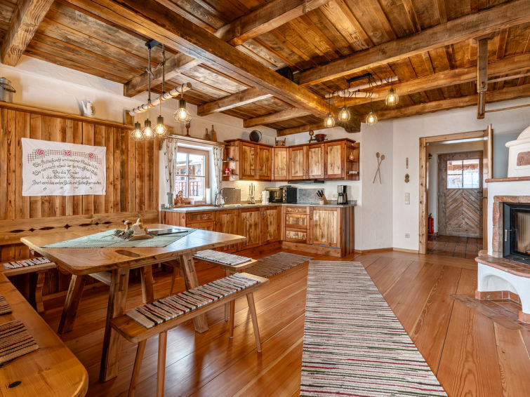 "Heregger Hütte", chalet 5-kamers 150 m2 op 2 verdiepingen. Het objekt is geschikt voor 6 volwassenen + 4 kinderen. Licht, gerenoveerd in 2024, zeer gezellig en met veel hout ingericht: kleine woon-/eetkamer met 1 2-pers divanbed, eethoek en tegelkachel. 2 2-pers. kamers. 1 kleine kinderkamer met 2 x 2 stapelbedden. Woonkeuken (4-pits kookplaat, mini-oven, afwasmachine, waterkoker, diepvriezer, elektrische koffiemachine) met zwedenkachel, eethoek, Sat-TV en internationale TV-zenders (Flatscreen TV). Uitgang naar het balkon. Aparte WC. Vloerverwarming. Souterrain: 2 douches, dubbele wastafels, Sauna. Elektrische verwarming, vloerverwarming. Houten vloeren. Comfortabele inrichting in landelijke stijl. Balkon, groot terras 100 m2. Terrasmeubelen, balkonmeubilair, barbecue (verrijdbaar). Zeer mooi panoramazicht op de bergen. Ter beschikking: wasmachine, sauna, haardhout (gratis). Internet (WiFi, gratis). Garage op het terrein (2 Auto's). Rookvrij huis. Maximaal 1 huisdier/hond toegestaan.