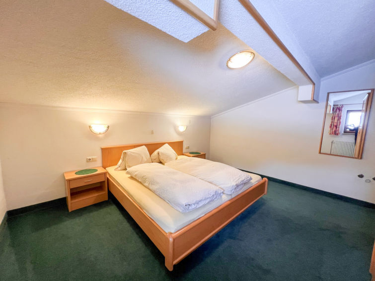 "Top 2", appartement 4-kamers 80 m2 op de 2e verdieping. Ruim en licht, gedeeltelijk afgeschuinde daken, gezellig en met veel hout ingericht: 2e Verdieping: hal. 2 2-pers. kamers. 1 2-pers. kamer met douche/WC. Woonkeuken (4-pits kookplaat, oven, broodrooster, waterkoker, elektrische koffiemachine) met eethoek, Sat-TV, internationale TV-zenders en Flatscreen TV. Uitgang naar het balkon. Douche, aparte WC. Vloerbedekking. Groot balkon. Balkonmeubilair. Mooi panoramazicht op de bergen en het landschap. Ter beschikking: Internet (Internet (WiFi), gratis). Niet rokers woning. Rookmelders. 50613-000400-2020