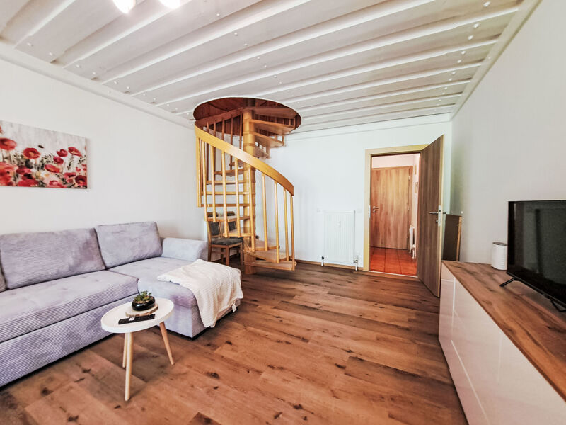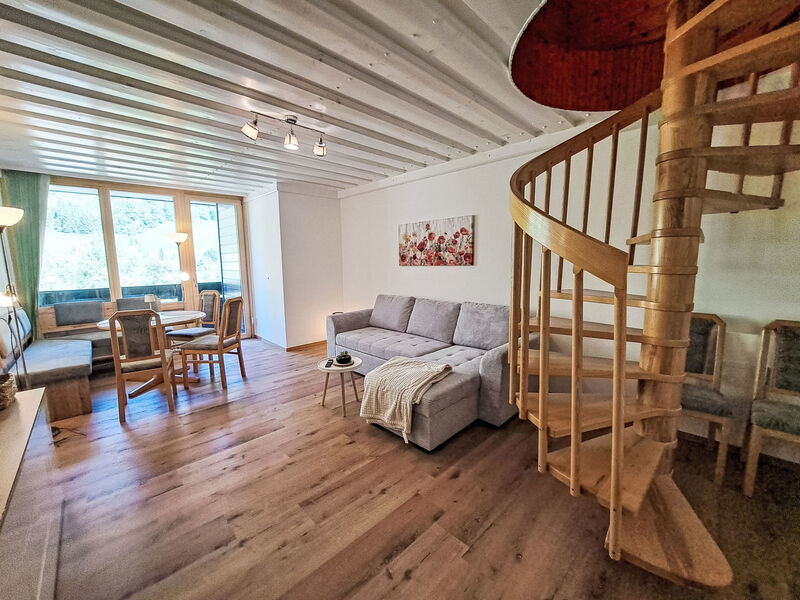 "Morgensonne", maisonette 4-kamers 64 m2. Ruim en licht, gerenoveerd in 2025, comfortabel en smaakvol ingericht: hal. Woon-/eetkamer met 1 divanbed. Uitgang naar het balkon. Kleine keuken (oven, afwasmachine, 4 keramische glas kookplaten, broodrooster, waterkoker, elektrische koffiemachine). Bad/WC. Bovenverdieping: (wenteltrap), 3 2-pers. kamers met dakraam. Douche/WC. Parketvloeren. Zeer mooi panoramazicht op de bergen. Ter beschikking: haardroger. Geschikt voor families. Niet rokers woning.
