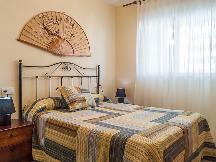 Appartement 3-kamers 80 m2 op de 4e verdieping. Eenvoudig en doelmatig ingericht: woon-/eetkamer 20 m2 met TV, air-conditioning en heteluchtverwarming. 1 kamer met 1 2-pers bed en ventilator. 1 kamer met 2 bedden (90 cm), ventilator. Keuken (4-pits kookplaat, oven, magnetron, diepvriezer). Bad/WC, aparte WC. Elektrische verwarming. Terras 13 m2, op het oosten gelegen en op het zuiden gelegen. Terrasmeubelen. Uitzicht op zee, het zwembad en de tuin. Ter beschikking: wasmachine, kinderbed. Internet (WiFi, gratis). Garage nr. -3 Nº10. VUT/MA/12585 // Reg. Nr.: ESFCTU0000290290007850020000000000000000VUT/MA/125852