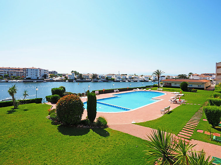 Mooi, comfortabele residentie "Sant Maurici". In de wijk Lago San Mauricio, 2 km van het centrum van Empuriabrava, zonnige ligging, 2.5 km van zee, direct aan het meer, op het zuidwesten. Voor medegebruik: groot, mooie, verzorgde tuin (omheind) met gazon en planten, openluchtzwembad hoekig (10 x 15 m, seizoensgebonden beschikbaarheid: 15.Mei. - 30.Okt.). Kinderzwembad. In het complex: parkeerplaats nr. 9. Levensmiddelenwinkel 50 m, supermarkt 10 m, restaurant 50 m, bar, bushalte 500 m, zandstrand "Empuriabrava" 2.5 km. Jachthaven 4 km, golfterrein (15 holes) 3 km, surfschool 3 km, zeilschool 3 km, tennis 900 m, midgetgolf 1 km, manege 2 km. Attracties in de buurt: Túnel del Viento Empuriabrava 950 m, Parque Acuático Aquabrava Roses 6 km, Casino y festival de Peralada 14 km, Museo Dalí Figueres 15 km, Ruïnes de Empúries 21 km, Cadaqués 21 km. De sleuteloverdracht vindt plaats bij het agentschap Interhome in Empuriabrava.